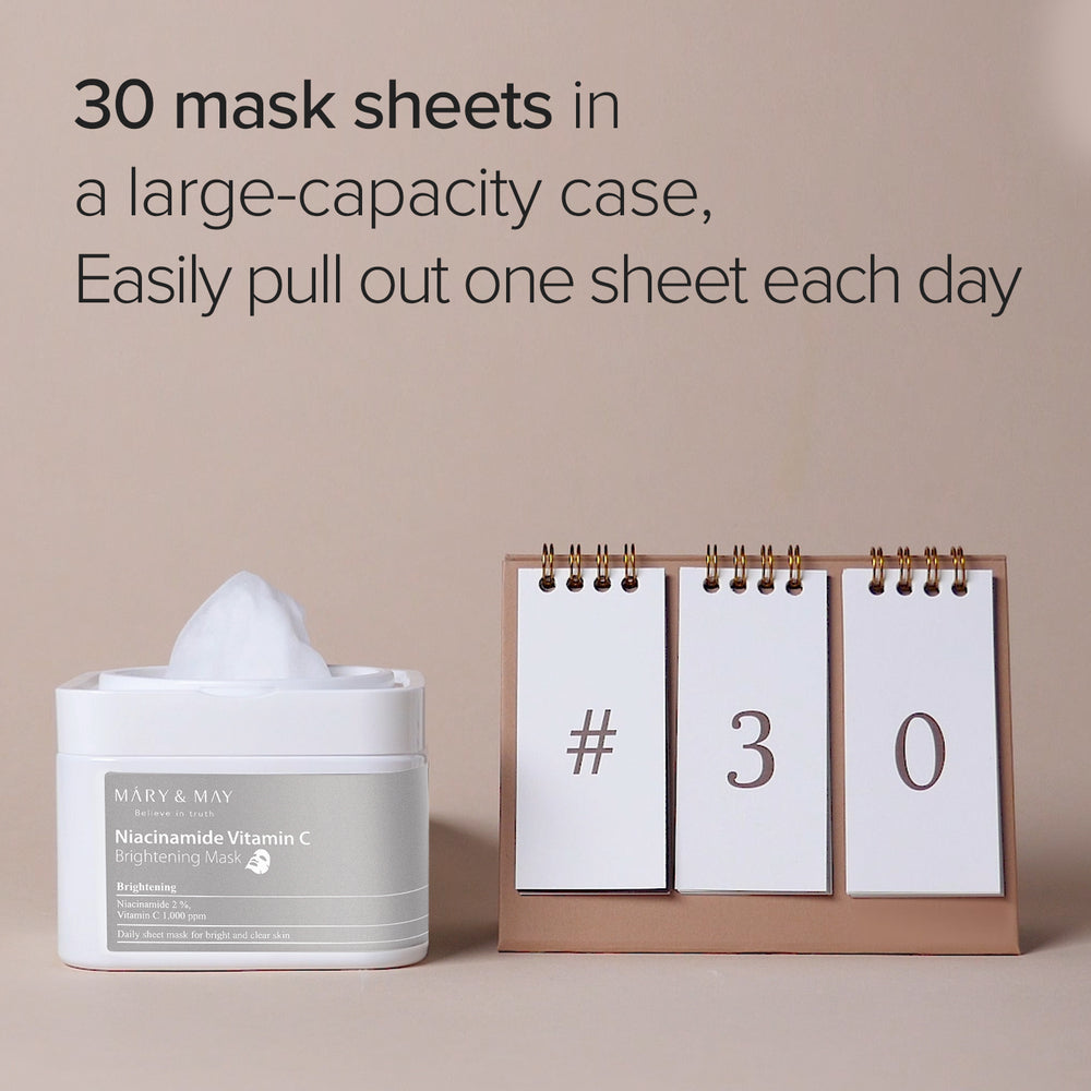 Revitalize dull, tired skin with the Mary & May Niacinamide + Vitamin C Brightening Mask Pack, a daily-use vegan mask set that restores clarity, brightness, and hydration for a visibly glowing complexion.