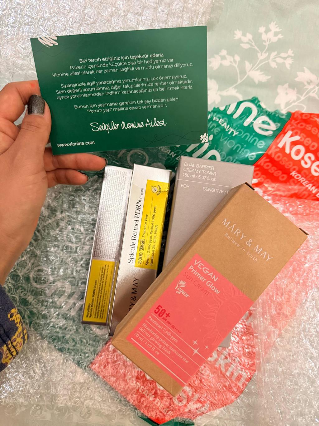 Sipariş verdikten sonra bilgilendirme aşamaları çok başarılı. Özellikle Mary & May ürünlerini tercih ettim 🫶🏽 ayrıca hediyeniz için de çok teşekkür ederim.