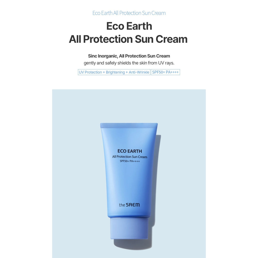 Protect your skin from the full spectrum of modern environmental stressors with The Saem Eco Earth All Protection Sun Cream SPF50+ PA++++, a mineral sunscreen designed not only to block UVA and UVB rays but also to shield the skin from blue light (HEV light) emitted by phones, laptops, and digital screens. Ideal for anyone who spends long hours indoors or outdoors, this advanced formula helps prevent pigmentation, dullness, and premature aging caused by UV exposure and high-energy visible light.