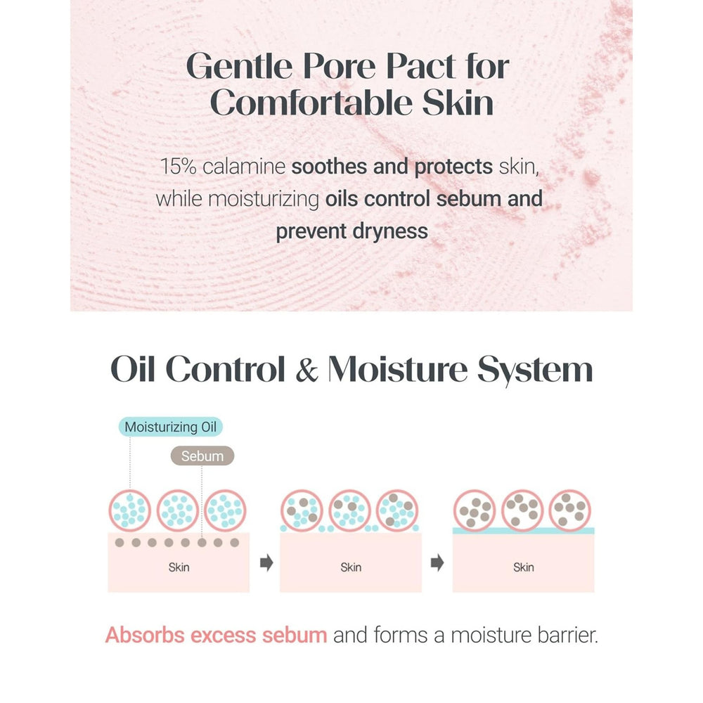 For combination and oily skin types, the pact helps maintain oil control from morning to night, preventing unwanted shine and extending the wear time of foundation. For sensitive or redness-prone skin, the calming blend of calamine and hydrating oils helps soothe discomfort while supporting a healthier barrier.