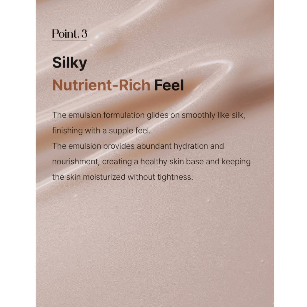 Fermented ingredients, cocoa extract, ergothioneine, beta-glucan, and adenosine work together to brighten dull skin, support repair, and improve skin density. With continued use, the emulsion delivers what is described as a “360° elasticity lift,” enhancing flexibility, firmness, and bounce from all angles.